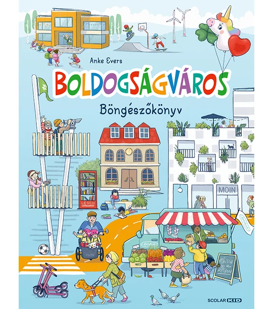Gyere velünk Boldogságvárosba, és fedezd fel az itteni vidám életet! Hol lehet őzikékkel találkozni a városban? Vajon megtalálod az ablakot mosó ipari alpinistákat? És hol rejtőzhet Frici, az elkóborolt fekete cica? A böngészőkönyv mókás képeit nézegetve Boldogságváros lakóinak örömteli mindennapjai rajzolódnak ki. A könyv belíve nem tartalmaz szöveges oldalakat.