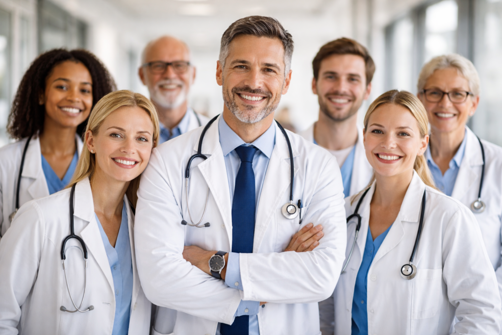 Dr. Áchim Ilona pulmonológus, Prof. Dr. Altorjay Áron sebész, Dr. Arányi Viktória pszichiáter, Dr. Arday-Janka Zsófia neurológus, Dr. Bácskai József szülész-nőgyógyász, Dr. Balsay Miklós belgyógyász, diabetológus, angiológus, Dr. Barabás Tamás urológus, Dr. Batta István ortopéd-traumatológus, Dr. Beh Mária fül-orr-gégész, Dr. Bjelik Anna pszichiátria szakorvos, Dr. Borsodi Imre belgyógyász, Dr. Czettner Dániel traumatológus, Dr. Csada Imre Zoltán traumatológus, Dr. Deák György gyermekgyógyász, gyermekneurológus, Dr. Deák Piroska háziorvos, Dr. Dömötör András belgyógyász, Dr. Fáncsik Éva aneszteziológus és intenzív terápiás szakorvos, Dr. Farsang Zoltán sebész, emlősebész, Dr. Finta Ádám gasztroenterológus, belgyógyász Dr. Gajdán László gasztroenterológus, hepatológus, belgyógyász, Dr. Gruiz Andrea csecsemő-, gyermekgyógyász szakorvos, Dr. Hegedűs János sürgősségi szakorvos, Dr. Horinka Judit háziorvos, belgyógyász, Dr. Horváth László belgyógyász, Dr. Horváth Szabolcs ortopéd-traumatológus szakorvos, Dr. Imre Ruben szülész-nőgyógyász, meddőségi specialista, Dr. Jansen Márk sürgősségi orvos, rezidens, Dr. Jánvári Kristóf ortopéd-traumatológus szakorvos, Dr. Jelinek Dániel háziorvos, neurológus szakorvos, Dr. Kálmán Andrea csecsemő- és gyermekgyógyász, Dr. Karászi Péter ortopéd-traumatológus, Dr. Komjáti Klaudia urológus, Dr. Kovács Miklós szülész-nőgyógyász szakorvos, Dr. Köveshegyi Zsuzsanna háziorvos, belgyógyász, Dr. Lakatos Gábor onkológus, Dr. Madácsy László belgyógyász, gasztroenterológus, Dr. Markó Gábor neurológus szakorvos, Dr. Miklovicz Imola reumatológus, Dr. Molnár Erika házi gyermekorvos, Dr. Noori Ebrahim belgyógyász, kardiológus, Dr. Orosz Gábor szülész-nőgyógyász szakorvos, Dr. Patik Ferenc háziorvos, Dr. Ruzicska Zsolt szülész-nőgyógyász szakorvos, Dr. Sarafi Andrea belgyógyász, háziorvos, Dr. Schäffer Péter csecsemő- és gyermekgyógyász, Dr. Schandl Márton szülész-nőgyógyász rezidens orvos, Dr. Serki Márta pszichiáter, Dr. Simon Kornélia csecsemő- és gyermekgyógyász, gyermekkardiológus, neonatológus, Dr. Somogyi Ágota onkológus, Dr. Szántó István onkológus szakorvos, Dr. Szomor Árpád belgyógyász-hematológus szakorvos, Dr. Szőke Katalin szülész-nőgyógyász szakorvos, Dr. Tóth Tímea neurológus főorvos, Dr. Trimmel Dorothea háziorvos, Dr. Turi Tibor belgyógyász, kardiológus szakorvos, Dr. Tüsér Zsuzsanna belgyógyász-gasztroenterológus, Dr. Varga Judit pulmonológus, Dr. Vaszilkó Péter ortopédia-traumatológia szakorvos, Dr. Végh Dóra reumatológus, Dr. Vida István fül-orr-gégész szakorvos, Dr. Volf Péter belgyógyász-kardiológus, Dr. Zsoldos Gábor pulmonológus, Dr. Guseo András neurológus, ideggyógyász, pszichiáter.