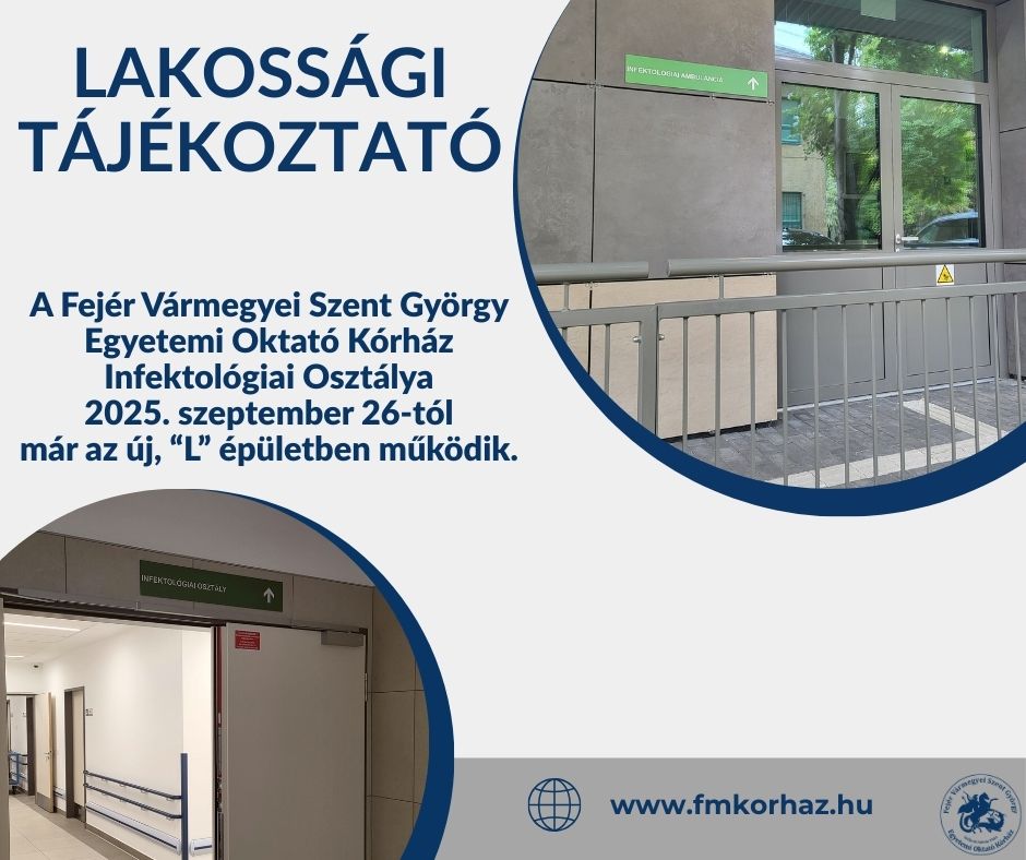 Költözik a kórház infektológiai osztálya – péntektől már az „L” épületben várják a betegeket
