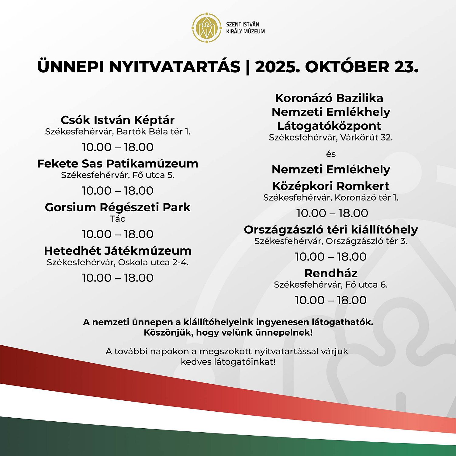 Ingyenes múzeumlátogatás október 23-án Székesfehérváron – Ünnepi program a Szent István Király Múzeumban