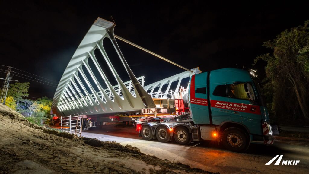 A most beemelt szerkezeti részek hatalmasak: a 193 tonnás, 80 méter hosszú híd összesen nyolc elemből áll, amelyeket kettesével illesztettek össze. Most ezekből négy került a helyére, a többi elem októberben következik.